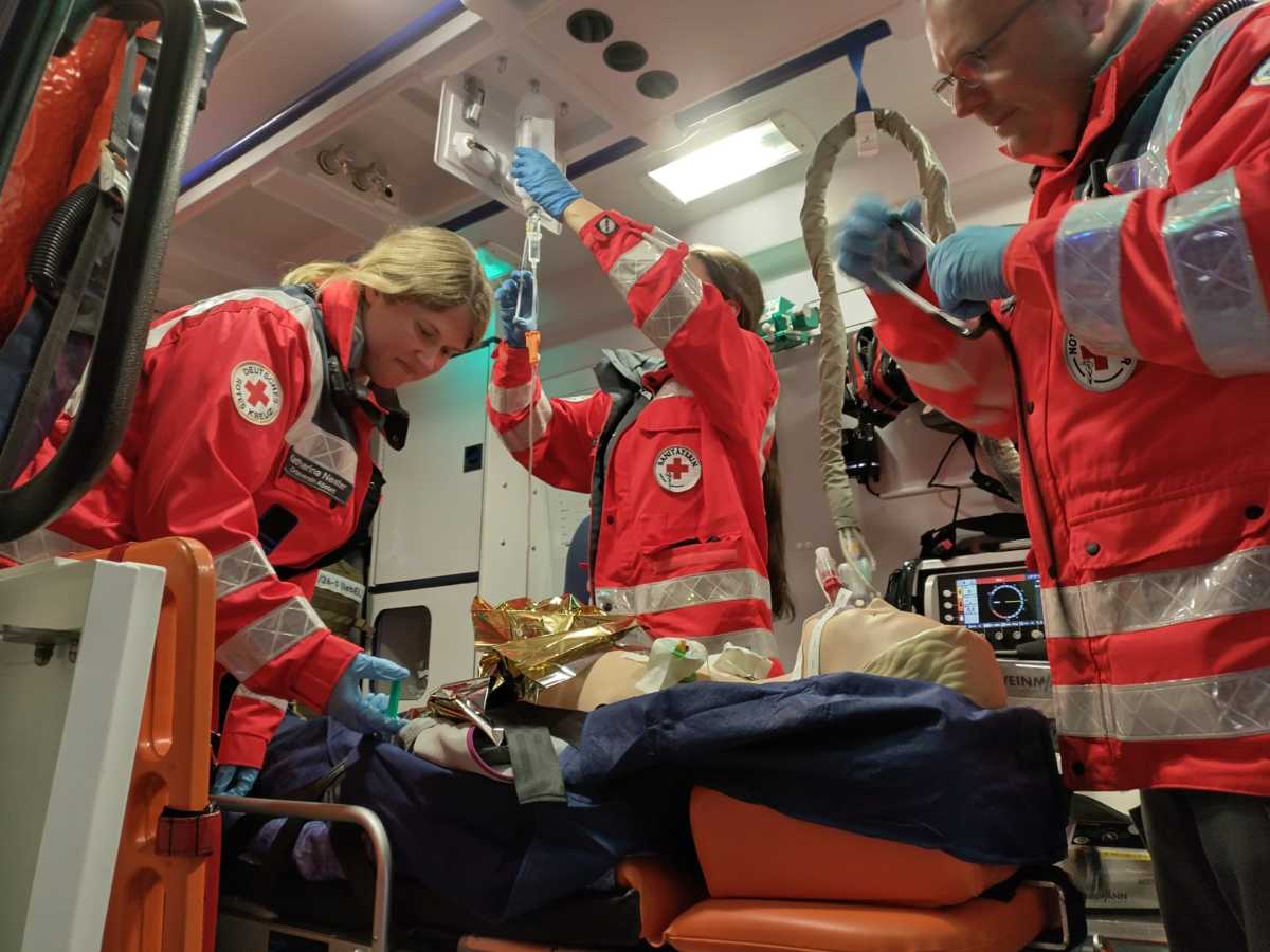 Das Szenario: Ein Verkehrsunfall mit mehreren Verletzten. Aufgrund der hohen Personenzahl wurde für den Rettungsdienst ein MANV 1 (Massenanfall von Verletzten) ausgerufen. Die beteiligten Ortsvereine standen in Bereitschaft und übernahmen anschließend die Versorgung der Patienten.